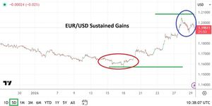 The EUR/USD is near the 1.19500 level, with fast conditions still shaking the broad Forex market.